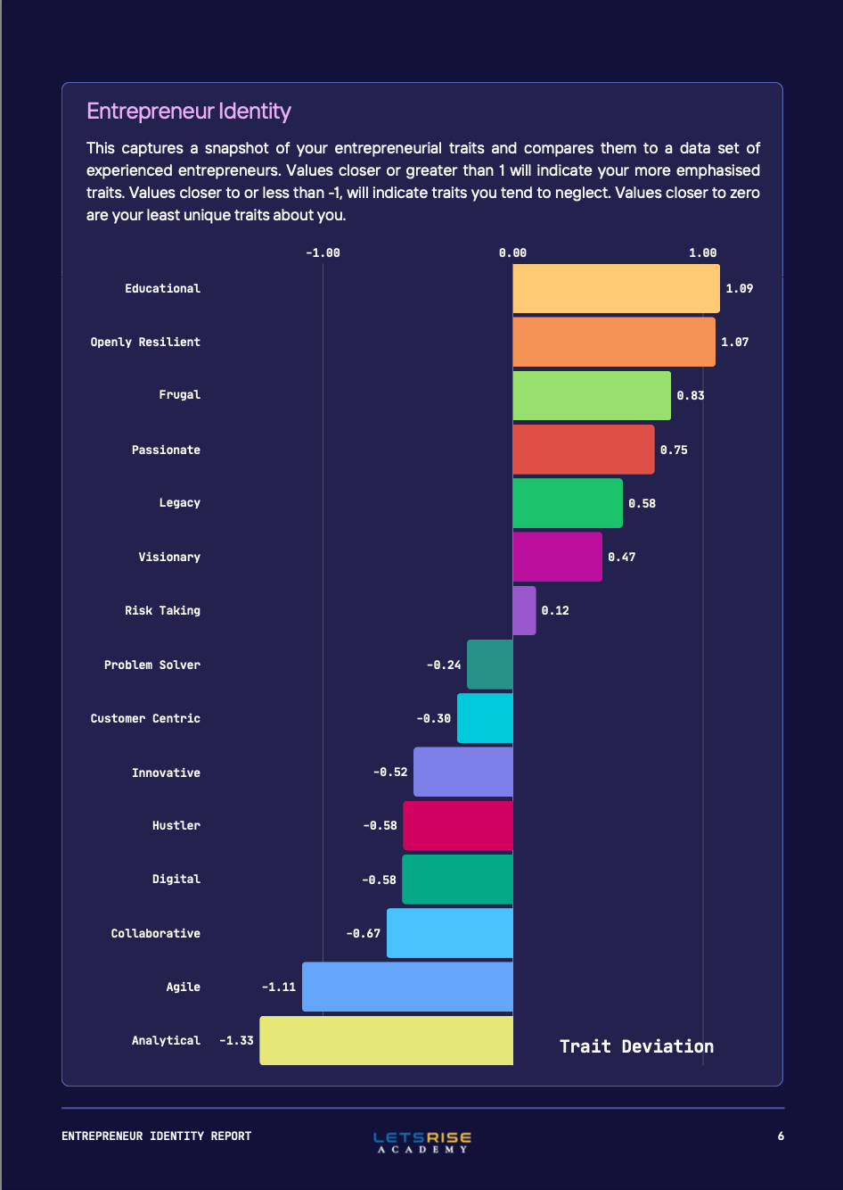 We compare your Entrepreneurial Traits against entrepreneurs that succeeded and the ones that are still trying.